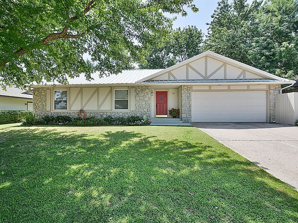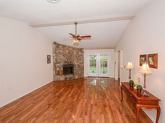 Absolutely immaculate one-story home. Large vaulted living room w. corner fireplace, elegant laminate flooring extends through kitchen. Tumbled marble backsplash, double sink. New windows 2011. Low maintenance steel roof. French doors to patio. Must see!