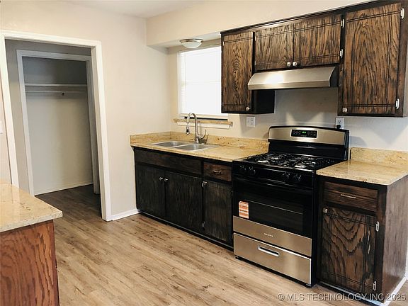 BE A PART OF THIS TRANSITIONAL NEIGHBORHOOD only 2 blocks from Main Street and Cushing Safety Center. This 1981 3/1.5/1 brick on fenced corner lot is ready for new owner! Vacant lots behind and in front of property. Kitchen features brand new gas cookstove/range, lovely granite countertops and cozy dining area open to living room with good natural light. LVP flooring throughout for easy cleaning. Coat closet in entry, linen storage in hall, and walk-in closet plus half bath in primary bedroom. Central heat/air, attic fan, newer roof, attached garage, vinyl tilt-in windows. 2 new construction in the area just sold in August and 2 more currently under construction! SELLER OFFERING $3,000 painting allowance or your choice of use. OWNER FINANCE POSSIBLE WITH APPROVED TERMS. Call for details or for private showing.