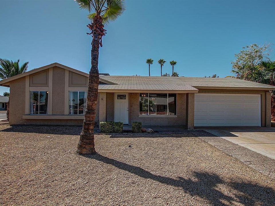 THIS QUALITY REMODELED HOME IS READY FOR YOU. BRAND NEW KITCHEN CABINETS AND GRANITE COUNTER TOPS. INCLUDES REFRIGERATOR, DISHWASHER AND OVEN/STOVE. NEW TILE AND CARPET THROUGHOUT. UPGRADED BATHROOMS. FRESH INTERIOR PAINT. NEWER A/C & HEATING UNIT, NEW GARAGE DOOR AND OPENER. NEWER BLOCK WALL FENCE SURROUNDS THIS EXTRA LARGE BACKYARD WITH DIVING POOL. LARGE COVERED BACK PATIO WITH STORAGE AREA. NEW SELF-CLOSING BACK SLIDING DOOR. CORNER LOT. SOLAR SYSTEM IS OWNED.