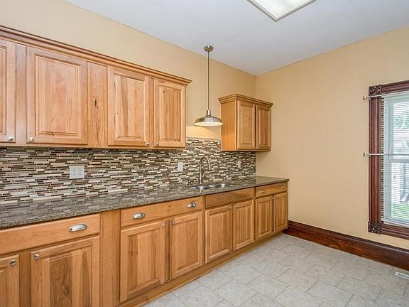 Completely remodeled home that features 2 large bedrooms and 1 large bath. Kitchen has been updated with beautiful cabinets, quartz countertops and fabulous tile backsplash. Gigantic dining room and living room, First floor laundry. Furnace, siding, windows, A/C and roof are newer. Great front porch. 2 car detached on a large corner lot.