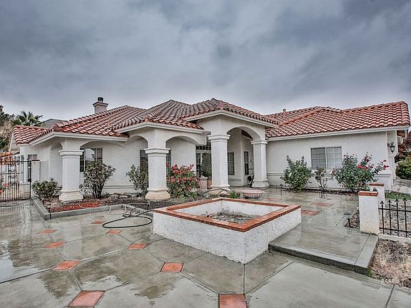 Attention to detail in this 4 bedroom custom built home on the hill. Beautiful views of the city and Sierra Nevada mountains from this corner lot estate. Spanish Mediterranean design with low maintenance hardscaping in front and back yards. Front and back both have custom stamped concrete. Front has expansive Mediterranean patio and fountain. Nice and Bright open kitchen with Bosch appliances and Open floorpan into family room. Family room has see thru fireplace and French doors leading to back yard. Great room features soaring 14ft ceiling, custom windows and see thru fireplace. Hardwood flooring in great room, family room and bedrooms. French doors into bedroom 1 that is great for office. Executive master suite with sleeping area, sitting room and three sided fireplace. Master bath has sunken tub and a LARGE walk in closet. Room of master would be perfect for exercise room or nursery. This is a must see!