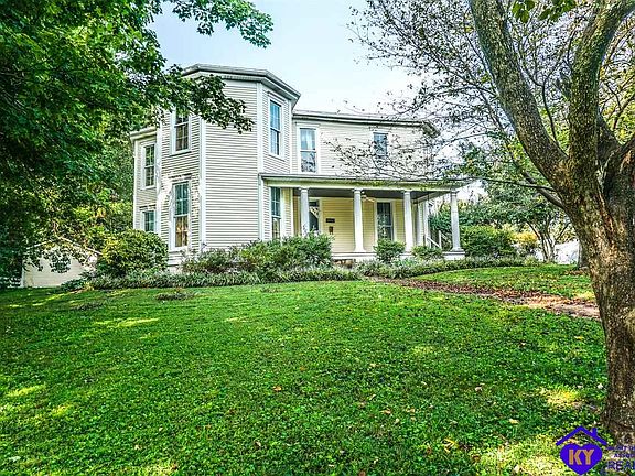 Stunning Italianate style home on 2.8 acres in town. Very private feel, as approximately 2 acres are wooded. This beauty features 6 bedrooms, 2 & 1/2 baths, has very spacious kitchen with indoor grill/stove top combination, and all appliances remain. Original, chestnut hardwood flooring and ceramic tile throughout most of the home. There are transom windows over the doors and old tin mantels are still in place to add to the character of this charmer that was built in 1873. Exterior features include a large covered front porch, fenced yard, 2 car garage, fire-pit, and a small cabin. Must see to appreciate!!