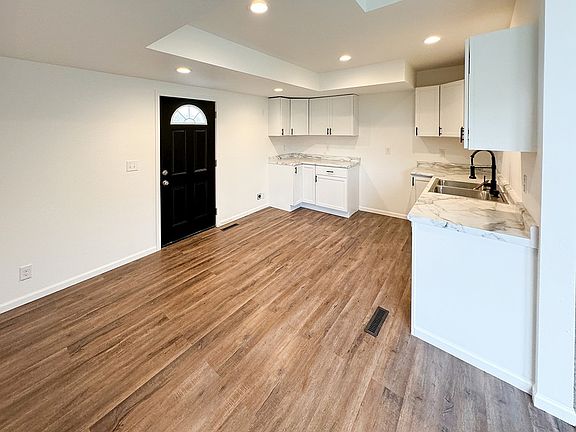 This beautifully transformed home, fully renovated in 2023, is ready for its new owner! The main floor boasts a bright eat-in kitchen, cozy living room, full bath, a convenient stackable laundry area, and a versatile bedroom or office space. As you ascend the stunning staircase, you'll find a spacious and chic primary suite showcasing original hardwood floors, pine ceiling, a walk-in shower, and a generous closet. Step out onto the refinished deck to enjoy picturesque views of the ballpark and breathtaking sunsets. The expansive backyard offers endless possibilities, whether you're dreaming of a large garden, a new garage, or both. Plus, the basement provides plenty of storage space. As a bonus, the seller is offering a $2,000 credit at closing for appliances!