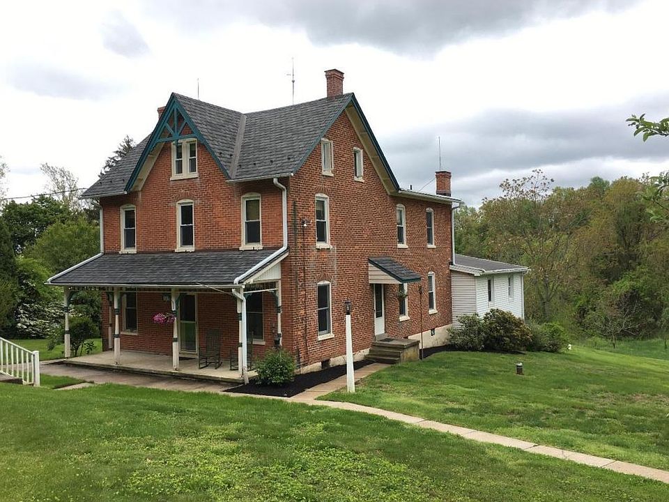 This gorgeous property has had many wonderful renovations! Solid Brick Farmhouse w/ tons of character & modern amenities. Enjoy the covered front porch, Living Room & Dining Room with hardwood floors, Large Renovated eat in kitchen w/ slate counter tops, 6 burner gas range & built in pantry; Spacious family room with sitting area & full bath plus bonus room room - overlooking the pond in rear yard (this back area could be used as an in law suite). The 2nd floor offers a master bedroom w/ gorgeous new attached bath including marble counter-tops, claw foot tub, gorgeous hardwood floors & large closet; 2 additional bedrooms and hall bath. The 3rd floor has also been renovated & offers a huge 4th bedroom. The property also features a 2 story Bank Barn with individual stalls for horses or livestock, PLUS your own bass pond, in an absolutely beautiful setting on 10.29 acres in Exeter Township. Call today for your showing!