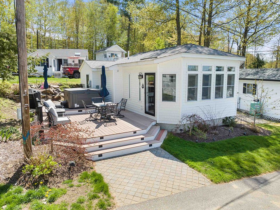 DEEDED DOCK! A deeded dock comes with this beautifully remodeled 2BR, 1BA condo with great views and incredible sunsets! This condo was updated recently and made use of every last square inch. With its 2BRs and 1 bath comes a laundry setup in the bathroom and a warm and cozy open concept from the kitchen to the living room. Its many windows make it light and bright, with a lake view from almost every room. Hardwood floors, granite countertops, a propane fireplace, and a newer kitchen give this townhouse a look of new construction. Walk outside to the oversized deck with a hot tub, grill, tables, & chairs. The stunning views will blow you away—plenty of room for the whole family. The full basement is very dry and great for storage. Cross the street to your deeded dock, beach, and a large deck on top of the boat house for extra space to enjoy the lake. This condo is within 5 minutes of shopping and many restaurants, 10-15 minutes to Gunstock, NH Bank Pavilion, Lakeport Opera House, and much more. Come view this gem on the lake! All for just $584,900