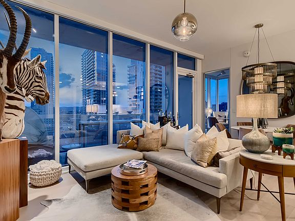 West and North Views of Lady Bird Lake, The Scenic Texas Hill Country, Illuminating Downtown Skyline, and the Colorful + Amazingly Beautiful Austin Sunsets can be Seen Through Walls of Floor to Ceiling 10ft Windows and Viewed from Your Extra Large Private Covered Terrace which Spans the Full Length of the Living Room