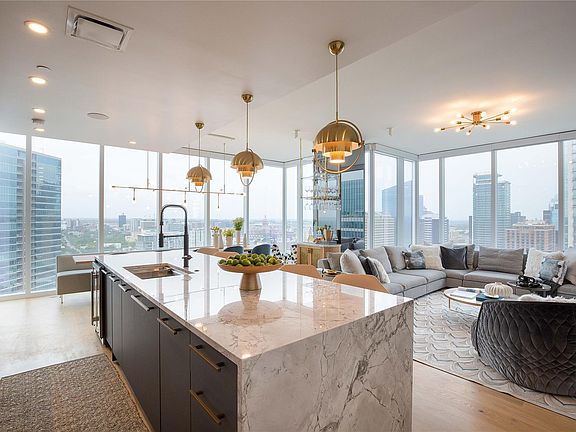 Live elevated in this custom-upgraded 3-bedroom condo on the 30th floor of The Independent. Thoughtfully designed with high-end finishes and smart home features, this residence offers wide-plank Slovenean Oak flooring, floor-to-ceiling windows, and sweeping city views. The Molteni & C kitchen includes quartzite waterfall counters, a locally crafted custom bar, and top-of-the-line appliances Gaggenau oven and microwave, Bosch paneled fridge, Scotsman pellet ice maker, and more. Integrated iPads control built-in speakers, automatic solar shades, and AV throughout. Two large TVs are included in the lease. The primary suite features a Molteni & C walk-in closet and a spa-like bath with Ann Sacks tile, natural stone counters, and Kohler Purist fixtures. All bathrooms were fully renovated in 2022. Additional features: Nest thermostat, Google Nest doorbell, designer lighting, two premium garage parking spots (one with EV charger), and an optional enclosed storage unit. Enjoy world-class amenities and a walkable downtown lifestyle just steps from Trader Joe's, Whole Foods, and the Lady Bird Lake trail. This is a rare opportunity to lease a designer residence in one of Austin's most iconic towers.