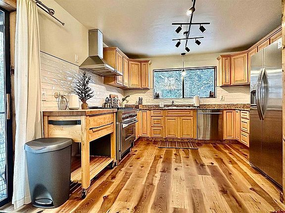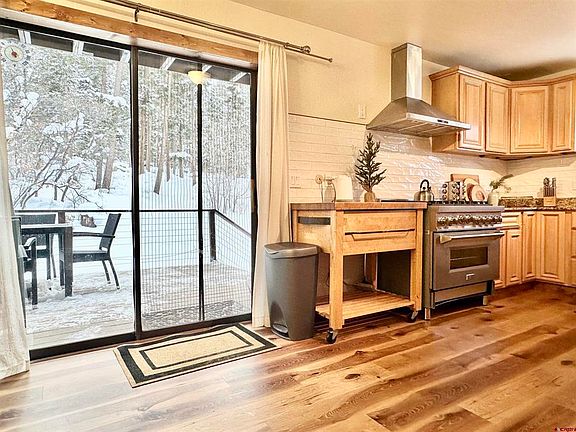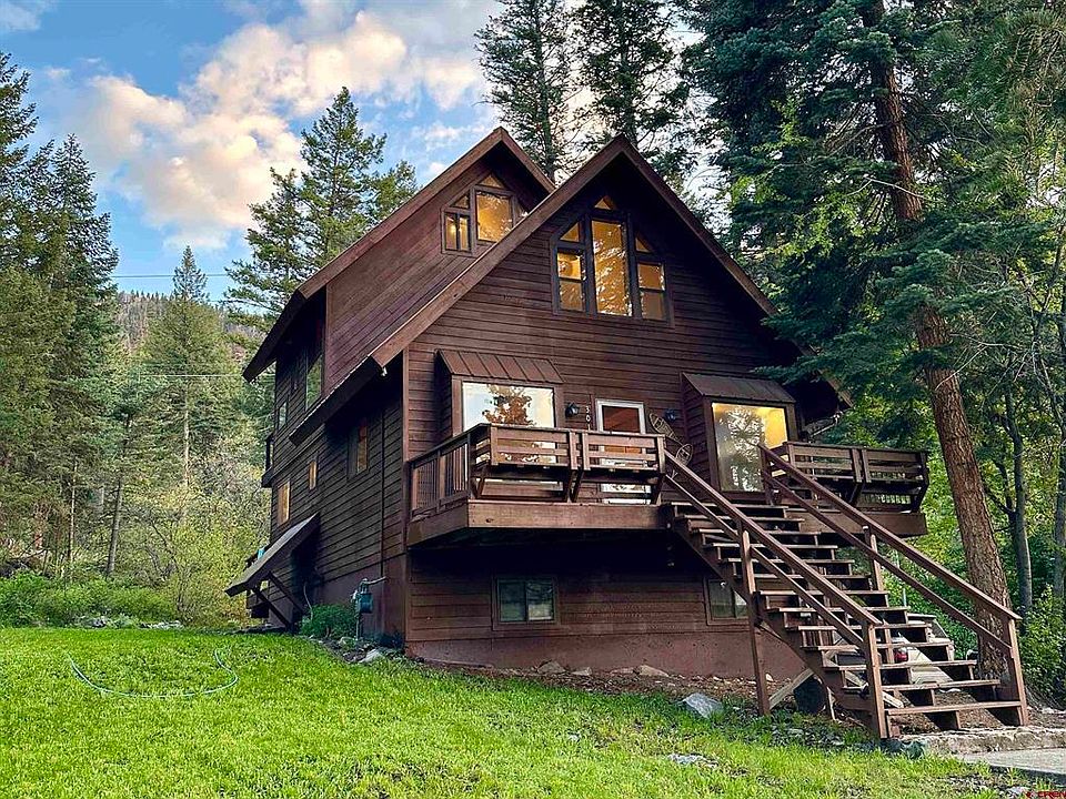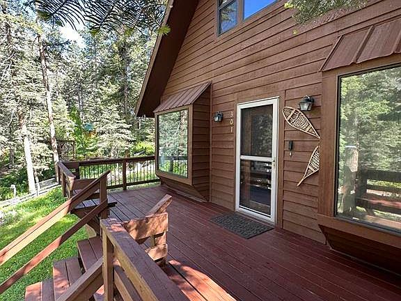 This amazing mountain home is located just outside of the city of Ouray (1.7 miles to the pool and downtown). Move in to this stunning residence, or utilize it as a vacation home/short-term rental. Located in Ouray County, just across the county/city line, this comes with a TRANSFERABLE SHORT TERM RENTAL PERMIT! Having this transferable permit opens up so many options for the next owner, as there is currently a 5-year waiting list in Ouray County to access a new short term rental permit. The permit for this property is #007. The property is entirely turn-key, and can be immediately utilized as a short term rental if desired. Tucked in amongst towering pine trees, this property provides privacy and and an amazing, peaceful environment. Enjoy the outdoors from the front deck, back deck, or private balcony deck off of the primary room. Completely renovated top to bottom in late 2022! The home, which is being sold furnished, features all brand new beds and bedding, luxe linens and towels, a fully stocked kitchen, a cozy pellet stove, and so much more. The loft bedroom has tons of natural light from 10 ft windows and a king size bed, a cozy leather lounging chair, and beautiful views. The primary bedroom features a king size bed, TV, a vanity & sink, and exclusive access to a private upper balcony deck via wall-to-wall sliding glass doors. Wake up looking straight out into the stunning wilderness! The "bunk room" is spacious and has two queen beds and a set of twin bunk beds. This room also has amazing 10 ft windows to gaze out into the pines from. The lower level bedroom features a plush queen bed and is on the walk-out basement level. There is a full bathroom on the walk-out basement level, a full bathroom on the upper level near the primary and bunk rooms, and there is a half bath on the main level. The chef's kitchen is fully equip with everything you may need, and features a brand new high end 36' ZLine oven/range. Solid granite countertops and a modern backsplash bring both form and function to the kitchen. There is high end cutlery, professional grade pots and pans, and plenty of bakeware and chef's tools included. Sliding glass doors walk out to the back deck from the dining/kitchen area. The living room features a 55' TV, a cozy pellet stove, amazing window seats, and a high end italian leather couches. The ceilings in the living room and primary room are tongue and groove aspen, providing an amazing cozy-cabin feel. There is another small living area on the walk-out basement level complete with a wet bar, beverage refrigerator/freezer, a microwave, and more. This space has been a 1B/1B apartment in the past, and could easily be returned to that configuration with a few simple adjustments. It also has private exterior access. There is a full bathroom on the level of the home that features the primary bedroom and the bunk room. Brand new granite vanities have been installed in this bathroom and the primary bedroom. There is another full bathroom on the walk-out basement level, and a 1/2 bath on the main level near the living room. The property is ideally located for those seeking peace and quiet but do not want to be far from town. Easily drive in for dinner and a soak at the hot springs, and then retreat to the serene peace that the woods provides. Ouray is known as "The Switzerland of America" and attracts visitors from near and far, year after year. Don't miss out on all that this stunning home and community have to offer!