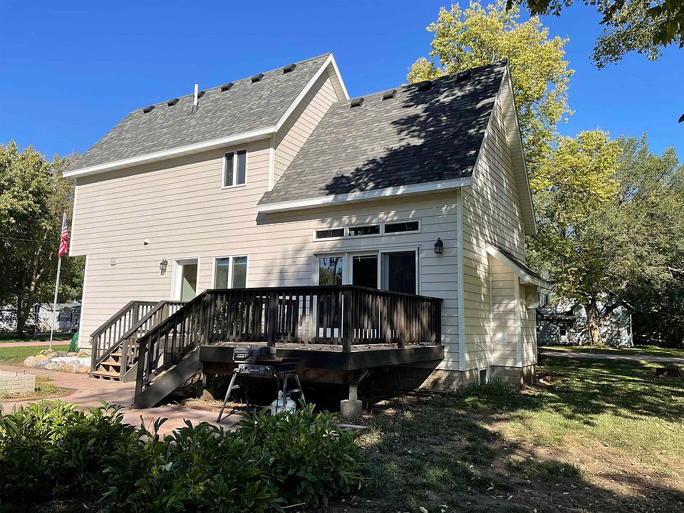 WAIT UNTIL YOU SEE THE INSIDE OF THIS HOME!! Located in Gayville just 10 mins from Yankton!! Built by Ron Goeden in 2012 with a Cape Cod Style, IT IS BEAUTIFULLY CONSTRUCTED from the 20 foot ceiling, Anderson windows/doors & wood laminate flooring throughout the main floor open concept kitchen w/ SS appliances, granite island/countertops, soft close cupboards, separate pantry & tiled 1/2 bath in between...leading to the living room that has large 3 panel north windows & south includes a patio door lined with 2 large windows that leads to 140 sf wood deck! Upstairs has a PERFECT open loft area for an office that overlooks the main living room below, a large master w/ french doors, his/hers closets, washer/dryer room & master bath tiled shower/flooring. In the basement there is a family room, 3/4bath, bedroom, 2 utility rooms & storage room. Outside there is an older 280 sf shed & a new cement pad ready for a new 2 stall garage to be built! SO MUCH CHARM!! Call to set up a showing ASAP!!