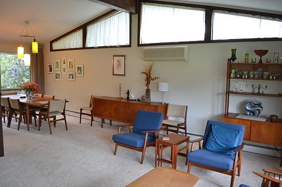 First time on market! An excellent design creates a home that is both modern, flexible & full of natural light! Large living room with wall of windows & cathedral ceiling open to dining area. Eat-in kitchen with walnut cabinets & stainless appliances. 3 bedrooms& two full baths on main level. Lower-level has a family room with doors to a large patio. Two additional bedrooms & or studies with a full bath. Convenient laundry room. Attached two car garage. Walk to schools, shopping and services. In the Village of Cay Hts , with sidewalks! If you like mid-century modern.. look no further!