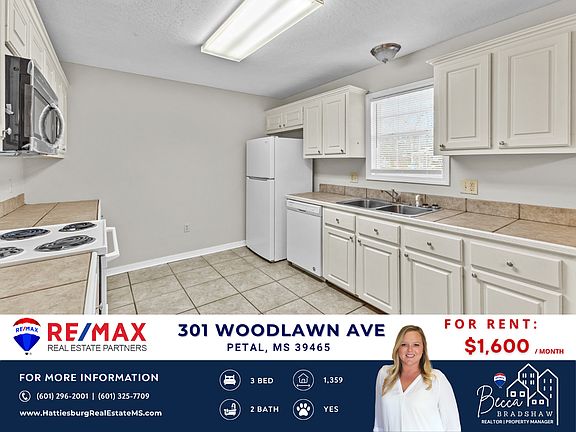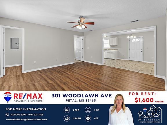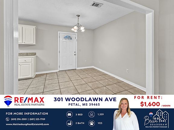 $1,600/mo | 3 Bed | 2 Bath | Pet-Friendly | Office Space | Petal, MS Looking for a quiet spot in Petal with room to spread out? 301 Woodlawn Ave has everything you need 3 bedrooms, 2 full bathrooms, a private office, and modern upgrades throughout. Tucked away on a corner lot in the Eastside neighborhood, this brick home features vinyl plank flooring, a spacious living area, and a kitchen with all appliances included. Enjoy morning coffee on the covered front porch and unwind in the evenings on your private patio. The layout is functional and inviting with a split-bedroom floor plan, walk-in closet in the primary suite, and an attached carport with additional parking. Pets are welcome with approval, and there's plenty of green space for your furry friend. Available now for $1,600/month with matching deposit. Tenant covers utilities. Renter's insurance required. Application fee is $40 per adult; background and credit screening required. Ideal for professionals, small families, or anyone looking for comfort and convenience in the Petal School District. Professionally managed by Becca Bradshaw | RE/MAX Real Estate Partners 12 Month Lease - Tenant pays utilities, pest control, and lawn care.