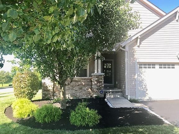 Custom Built RANCH with beautiful cathedral ceilings, gas log fireplace, open great room floor plan, covered front & back porches, spacious walk-in closets. Home backs up to beautiful pond with lights and fountain. Brand new carpet and paint throughout - feels like a New Build! 2 bdr, 2 ba with a large basement awaiting to be finished & super high efficiency construction. This Charming Falling Leaf community is one of a kind and the association covers cutting, fertilizing & weed control for your lawn, as well as mulch & pruning your front yard and a 7 acre wooded preservewith trails. Call today this won't last long!
