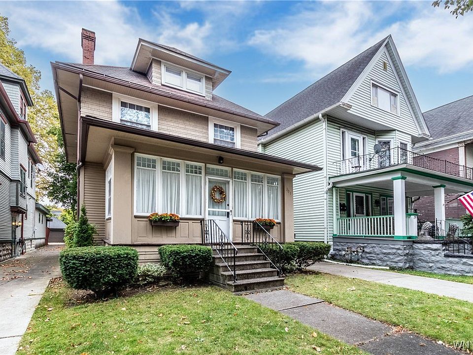 Fantastic two story home in the highly desirable Parkside district. This house features three bedrooms and 1.5 baths. Phenominal natural oak woodwork and hardwood flooring throughout. Sunroom in front provides a very nice space to let one add their special touch. Several new storm doors have been recently installed. The attic space can easily be converted to add living space. Basement features a newer HWT and glass block windows. A very deep lot provides a large backyard with a three car garage. Located close to the popular Hertel Ave area featuring shopping, restaurants and entertainment. Walking distance to the Buffalo Zoo and Delaware Park.