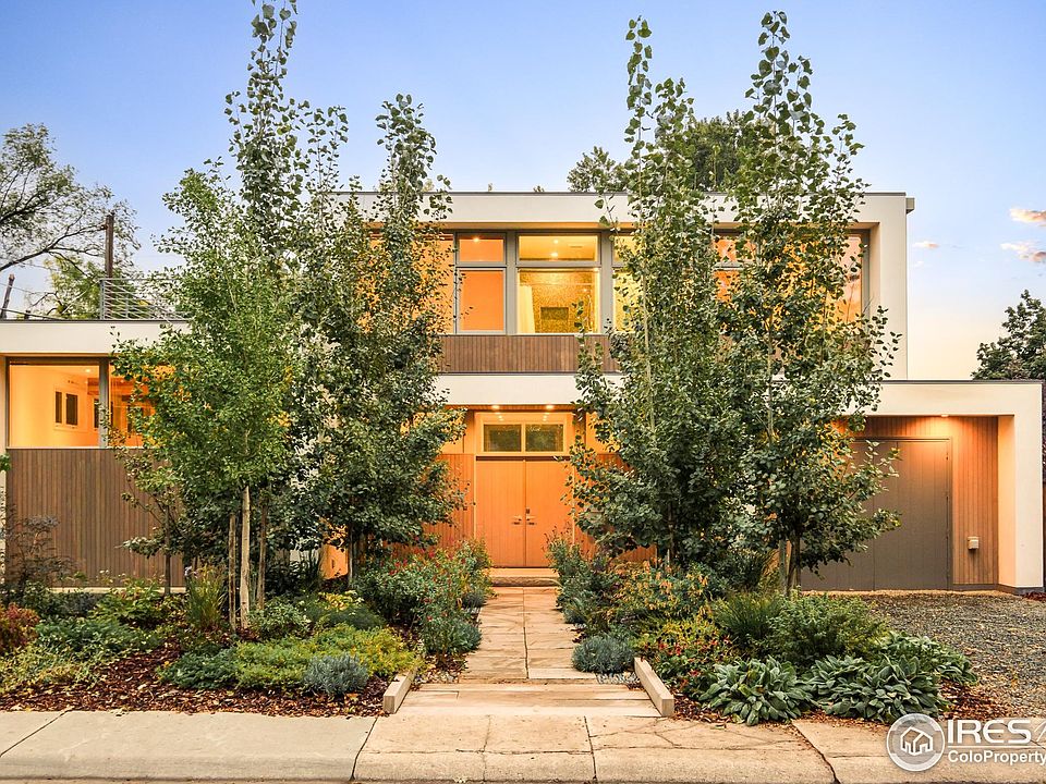 A rare architectural gem in Silver Maple, this newly built residence by Mark Gerwing and Jim Walker of Build ACI blends striking design with state-of-the-art systems. Soaring 14-foot ceilings, custom wood paneling and walls of glass create an open, light-filled floorplan that flows seamlessly with Italian tile and oak floors. The stunning eat-in kitchen dazzles with a vast center island, induction cooktop, wine refrigerator, ice maker and high-end appliances. Each bedroom offers the comfort of an en-suite bath. Revel in indoor-outdoor living with an enclosed courtyard accented by a concrete privacy wall, a thriving pollinator garden in the front yard and a sprawling rooftop deck with mountain views. EV ready power, sustainable design features include solar panels with PowerWall, double on-demand water heaters, zoned HVAC and advanced drainage systems built to bedrock. Moments from Growing Gardens, Ideal Market and Pearl Street, this home embodies modern luxury rooted in Boulder's natural beauty.