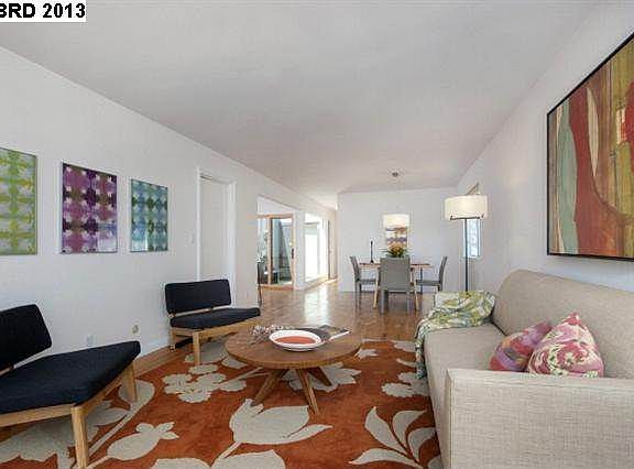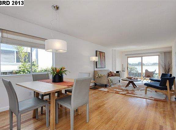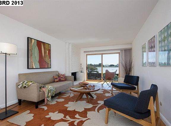 Located next to Bayshore trail, Charming 2 Bedroom 2 Bath Duet, light filled with great views of the bay, Recently painted and updated, Beautiful hardwood floors, Pretty brick fireplace, Stylish indoor atrium, Lovely patio for bird-watching, Great eat-in kitchen, Inviting living room and dining room.