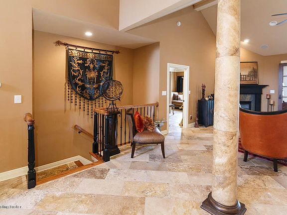 Stunning! You will utter ''WOW'' as you enter this amazing home. Do you want to feel like you are on vacation everyday? Here is your opportunity. Scenic water views. Open floorplan. Upgrades galore. Updates include travertine floors, sunroom addition, kitchen backsplashes, finished basement w/kitchen/bar area, gorgeous bathroom remodel, patio/serenity garden, rod iron fence, & Koi pond since closing in 2007. Upgraded lighting thru out; Mother-in-law suite w/addtl. entrance from garage & separate W&D hook-ups; Indoor/outdoor fireplace; Oversize side entry garage; owners/family members can fish in quarry. Looks like a show case home. Quiet neighborhood. Convenient location close to '64,'265, Starbucks & Kroger. Patio home. Move in & do nothing but ENJOY! Seller is realtor.