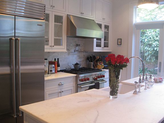 Stunning semi-detached, sun-filled, renovated home in Georgetown's East Village! Kitchen offers updated appliances, modern gas fireplace, and french doors leading to spacious garden. One-car garage parking, fully finished lower level living space. Modern finishes, in-ceiling speakers, throughout the home.