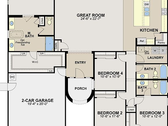 This split layout home features the master suite on one side and the two secondary bedrooms and den on the other. The master suite is spacious and has a spa-inspired bath with an enlarged shower and free standing tub. Other touches include granite countertops and the kitchen and master bath, two-tone interior paint and upgraded flooring.