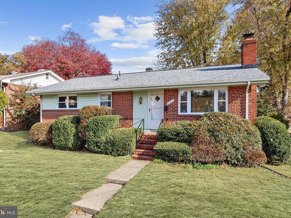 Lovely brick ranch-style home boasts updates throughout and is situated near commuter routes and Metro! Recently replaced roof, windows, carpeting, and more. Living room features a brick accented wood-burning fireplace. Separate dining room off kitchen. Kitchen highlights updated countertops and sleek appliances including wall oven. Hardwood flooring through main level bedrooms and new laminate in lower level. Three generously sized main level bedrooms and two full baths, including an en-suite master bath. Walkout lower level recreation room, bonus room, and fourth bedroom that is NTC. Deck overlooks level fenced rear yard with trees.