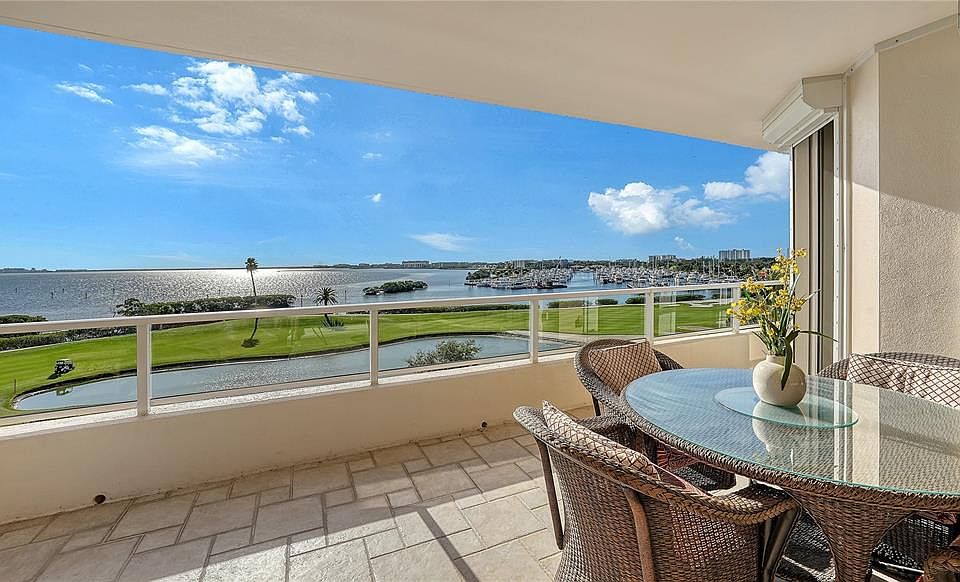 Enjoy elevated island living in this beautiful residence in coveted Building 4 at Grand Bay on Longboat Key, offering sweeping east-to-west views across the Harbourside Golf Course, marina, Sarasota Bay, and downtown skyline. Recently updated and beautifully furnished, this move-in-ready home delivers a rare combination of space, scenery, and resort-style amenities in one of Longboat Key’s premier communities. The thoughtfully designed floor plan features nearly 2,600 square feet of living space, enhanced by two expansive terraces that capture sunrise and sunset views. Travertine flooring flows throughout the main living areas. The den has been converted into a true third bedroom with a closet, offering flexibility for guests, family, or a home office. The open living and dining areas are framed by walls of glass that invite natural light and highlight the ever-changing coastal backdrop. The kitchen connects seamlessly to the living spaces, ideal for everyday living or entertaining. The primary suite is a private retreat with terrace access and a newly updated primary bathroom completed in 2019. Two additional bedrooms provide privacy and versatility, making this residence well-suited for full-time or seasonal use. Recent updates and tasteful furnishings—included in the sale—allow for effortless ownership and immediate enjoyment. This residence also benefits from Grand Bay’s reputation for attentive management and well-maintained common areas. Grand Bay residents enjoy access to a full suite of resort-style amenities, including multiple swimming pools, spa, fitness center, tennis courts, clubhouse, and deeded access to the private Bay Isles Beach Club, providing exclusive Gulf-front enjoyment just minutes away. Located behind the gates of Bay Isles, Grand Bay offers proximity to Longboat Key Club golf and tennis, deep-water marinas, and the shopping and dining of St. Armands Circle. Downtown Sarasota’s cultural attractions—arts venues, waterfront parks, and acclaimed restaurants—are easily accessible, completing a lifestyle defined by convenience, recreation, and coastal beauty. This Grand Bay residence presents a compelling opportunity to enjoy Longboat Key living with expansive views, updated interiors, and access to some of the island’s most coveted amenities.