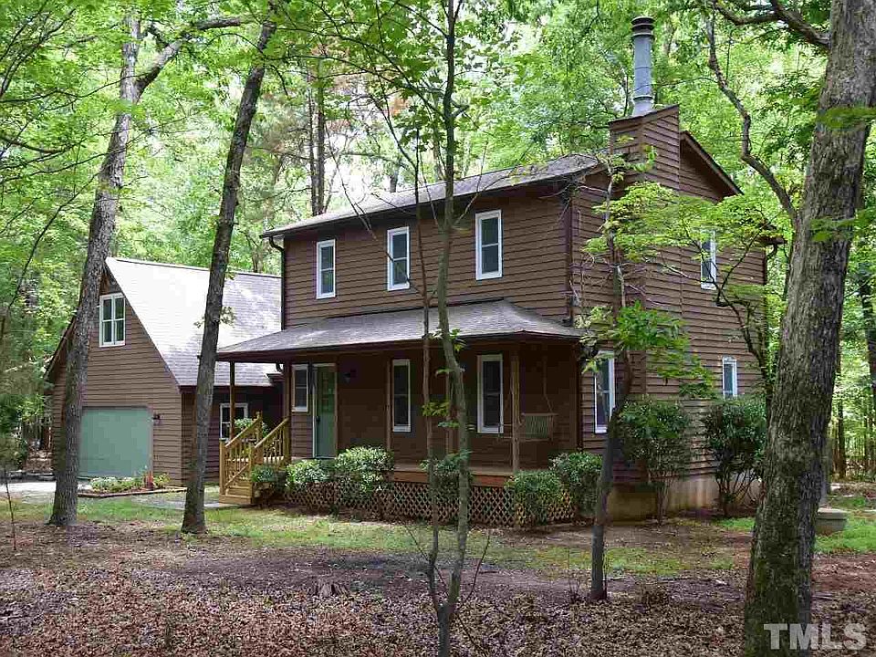 Cedar sided farmhouse on quiet 2.08 acres. Extensive updates include: new roof (30yr), windows, flooring, lighting (most LED), paint, and much more. Remodeled kitchen and bathrooms. High efficiency SEER 15 heat pump. Oversize 26x28 garage with heated & cooled bonus/office. Private road with almost no traffic & nice neighbors. Easy access to Chapel Hill and RTP. Bike to nearby Maple View Farms for ice cream. Listen to the owls and whippoorwills at night on the rocking chair porch or rear grilling deck.