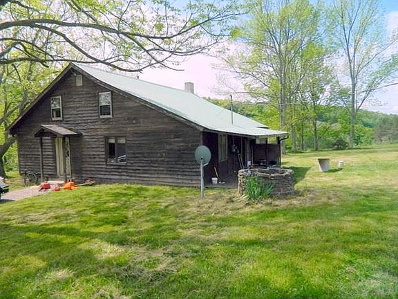 HUNTERS RETREAT! Enjoy a peaceful country getaway with this unique hunting cabin turned into a primary residence. Situated on 76 acres of land this rustic cabin includes 3 bedrooms, 2 full baths and an abundance of living space.Other features include; two detached pole barns with a plenty of storage space, a pond located a short walk from the home as well as many hiking, hunting and quad trails.