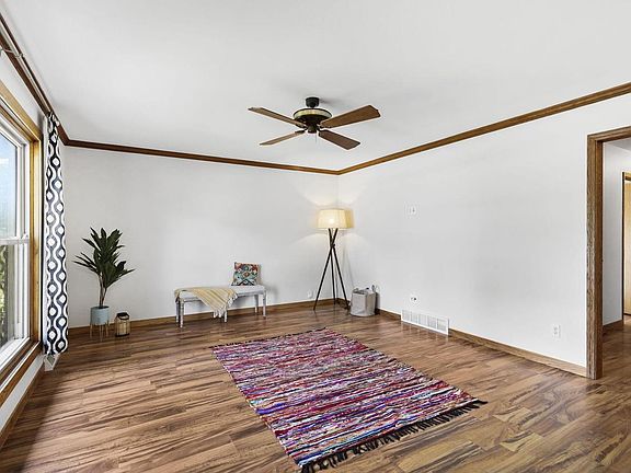 Wonderfully refreshed ranch with walk-out lower level and fenced yard. This 4 bedroom 2 full bath home is ready for a new owner. You'll love the many fresh finishes, tidy yard, and flexible layout. Enjoy a cocktail before bed, or a morning coffee on your second level deck of the primary bedroom. Lower level offers 4th bedroom, spacious rec room, fireplace and full bath, opening on to a partially covered patio. The two car has an annex for plenty of storage, working out or perhaps to inspire a new hobby. New carpeting in primary bedroom and entire lower level. Well maintained yard with just enough landscaping.