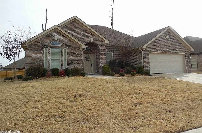 Custom built with stained cabinets, stainless steel appliances, granite counter tops, Hardwood floors in entry and living room, tile flooring in all wet areas, carpet in bedrooms. Large open split floor plan. Hall bath with double vanities. Master bath with double vanities, jetted tub and walkin shower with his/her walkin closets and extra 3rd closet. Lots of crown molding and crown caps throughout. Large covered patio with level lot and built in fire pit. Bryant School District, close to I-30 and shops.