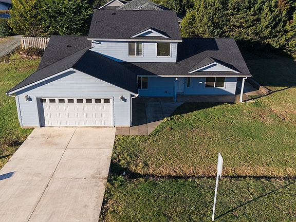 This 4 bedroom, 2.5 bathroom home sites in the peaceful residential neighborhood at the south end of Bandon Oregon. Built in 2018 and featuring 2,392 square feet on two levels, the home has ample living space for a variety of activities. Formal dining room, eat-in kitchen with additional kitchen bar seating is perfect for entertaining from the central kitchen. The office/flex space give opportunities for working from home or crafting. The main bedroom is large, with en suite bathroom and ample walk-in closet. Sit outside on the patios and enjoy a covered entrance. Concrete driveway opens to the two-car garage. This home is the perfect spot to bring your ideas and make it your own. Floor plan and square footage are based on multiple sources and may not match county records or seller estimates. All measurements are approximate.