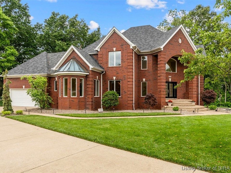 Stunning 5BR/3.5BA stately brick home in the desirable Plum Lake subdivision in Sellersburg, IN. Tucked away on a quiet cul-de-sac, this meticulously cared for home features soaring ceilings, a grand staircase and elegant details throughout. The main level offers a formal dining room, living room, family room, kitchen and a luxurious first-floor primary suite with a private en-suite bath. Enjoy movie nights in the spacious theatre room complete with built-in bar. The beautifully landscaped, park-like lot includes a relaxing swim spa lap pool, perfect for daily exercise or just unwinding. Generous living spaces, split bedrooms and serene setting make this home truly one of a kind. Located in a peaceful neighborhood yet convenient for shopping and dining, this is a rare opportunity to own a home with timeless elegance and modern comfort.