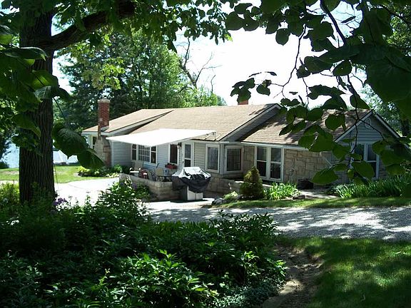 As a potential lake buyer your search may be over after viewing this charming lakefront home and that is not to mention the beautiful garden and grounds sitting on an almost unheard of 150 feet of lake frontage! The new owners will enjoy visiting or reading in the knotty pine sunroom which faces beautiful Golden Lake, sitting by the fireplace in the great room, gathered on the new stone deck and pergola around the fire ring or just hanging out on your own personal beach. With a newer septic system, furnace and AC, hardwood floors, field stone retaining walls, tank less hot water heater, stamped concrete patio, and sun setter awning the time may be right to own your own piece of paradise on beautiful Golden Lake.