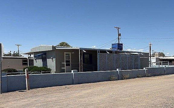 Newly renovated 2 bedroom, 1 bathroom mobile home located in a 55+ community. This spacious 14x60 home has been upgraded to extend the life for another 30-40 years. New water heater, and flooring installed in 2025, all appliances will stay, The classic desert landscape is ideal for minimal upkeep, yet provides a serene feeling. You'll have space to park your travel trailer or RV inside your fully fenced in property. There is additional storage room behind the carport and a nice area for evening activities. Across the street is a community center that offers activities for tenants and can be used for larger family and friend gatherings. There isn't any home owner's association due's however you have a $45.00 annual fee for the community center. Schedule your viewing and make this affordable home yours. This is a for sale by owner property and no comps will be offered to agents.