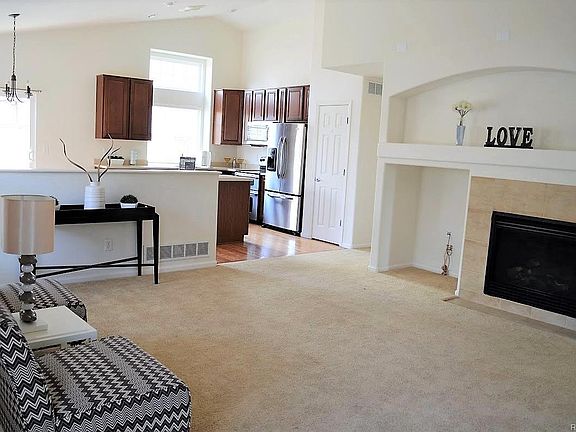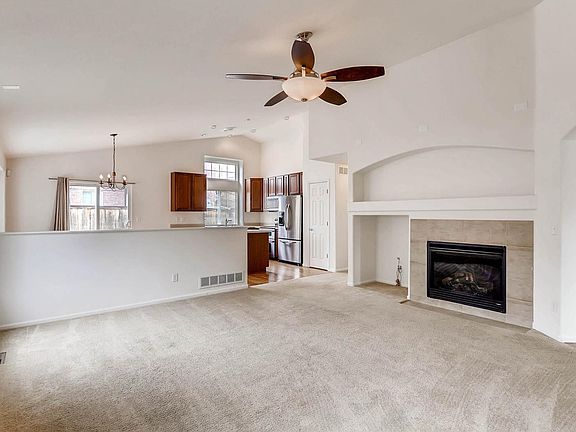 Wonderful Open Floorplan Ranch in The Conservatory! Near parks, trails, rec & pool facilities, the Southlands Mall, easy 470 access to DIA & Aurora Public Schools. Comfortable living in the south-east metro area! Side load garage, professional landscaping, & an inviting covered porch. Bright, entirely open kitchen and living area with vaulted ceilings, a gas fireplace, architectural details and a neutral color palate. Plenty of furniture space in the living area. Well designed kitchen offers smart workflow, newer appliances, a terrific island and hardwood floors. Plenty of cabinets and a pantry for storage. Large kitchen eating area. 2 nice guest bedrooms both with easy access a full bath with newly installed flooring. Roomy master suite complete with a 5-piece master bath with new tile floor and walk-in closet. Addition features include a fenced yard, sprinkler system, security system, surround sound wiring, a new roof in 2014 and an unfinished 866 sq/ft basement.