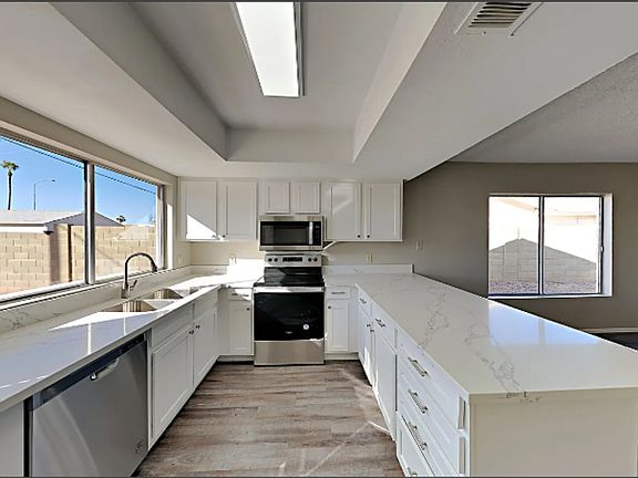 This charming 3-bedroom, 2-bathroom corner lot home with a 2-car garage is a must-see! Nestled in a serene, established neighborhood, it's conveniently located near the 101 and 60 freeways, plus just a short stroll to walking paths and a community park. Enjoy modern living with a sleek stainless steel appliance package and elegant quartz countertops. Stay comfortable year-round with a brand new HVAC system. The master suite is a true retreat, featuring double doors, a spacious walk-in closet, and luxurious new dual quartz sinks and a walk-in shower. We welcome both big and small dogs (select breeds and screening apply). Plus, bi-monthly landscaping is included for hassle-free outdoor upkeep. Don't miss out on this fantastic opportunity to make this house your home! 1 year minimum lease