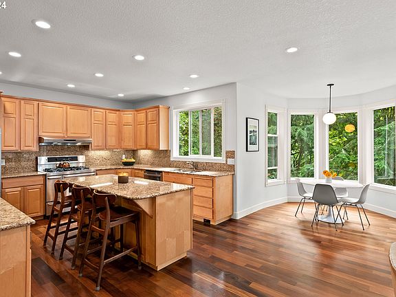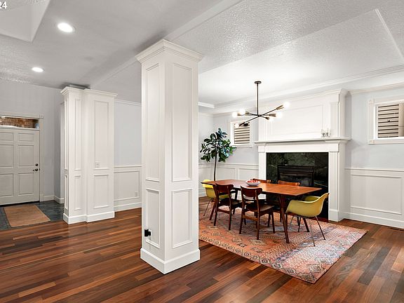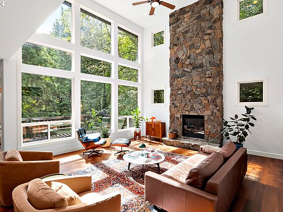 With its perfect balance of elegance and nature, this 6-bed, 3.5 bath home in coveted Arlington Heights is stunning! Nestled near Washington Park and the Wildwood Trail, you’ll love the blend of luxury and convenience in one of Portland’s most picturesque neighborhoods. Vaulted ceilings welcome you in, allowing natural light to fill the spacious rooms. The thoughtful design invites views of the surrounding trees from nearly every window, giving the home a serene, peaceful atmosphere. You’ll love the open floor plan which creates a comfortable flow from room to room. The living room, with its floor to ceiling windows, delivers Northwest Contemporary tree house vibes, and the expansive natural rock fireplace serves as the heart of the home. The gourmet kitchen and formal dining room are seamlessly connected providing an ideal setting for year-round entertaining or quiet family dinners. The adjoining deck extends off the kitchen nook, perfect for outdoor dining or relaxing in your private audubon. The main-level study, complete with its own exterior entrance, outdoor stone patio and nearby half bath, is set up nicely for the in-home practitioner. The lower level offers even more versatility, with its own private deck and spacious living area, perfect for guests and multi-gen living. The lower level's large windows, high ceilings and yet another fireplace create a bright, open feel, ensuring privacy and comfort. Retreat in the primary suite, which features a luxurious soaking tub and cozy shared fireplace, perfect for unwinding after a long day, or curl up with a book in the naturally lit seating nook. Its prime location offers easy access to NW 23rd shops, restaurants and bars, the Japanese and Rose Gardens and so much more, the best of Portland awaits! Nearby proximity to Washington Park, Hoyt Arboretum, or catch a trail into Forest Park. This home sits on a low traffic, dead end drive with coveted Ainsworth/Lincoln schools.