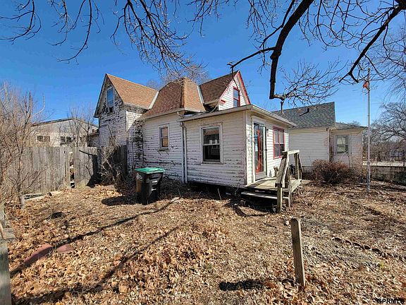 This handyman special has tons of potential, and the garage or workshop of your dreams! The main floor offers hardwood floors, large living and dining rooms, a good sized primary bedroom, full bath (with jacuzzi tub) and kitchen. Upstairs you'll find two more bedrooms, one of which has a massive walk in closet! The fenced back yard offers tons of privacy and access to your dream garage or workshop, this thing is enormous and has workbenches, and extra storage galore! Property is sold as-is.