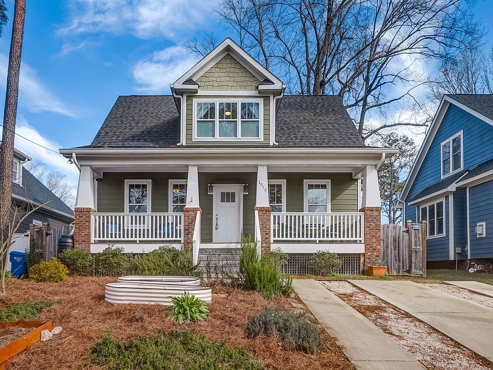 Welcome to your dream home nestled in a prime location, just a stone's throw away from the Museum of Life and Science, Northgate Park, Downtown Durham, and a host of other attractions! This charming residence exudes warmth and character from the moment you step onto its inviting front porch. Boasting 3 bedrooms and 2.5 baths, the interior features beautiful hardwood floors, crown molding, and an abundance of windows that bathe the space in natural light. The living area is a cozy haven with a fireplace, seamlessly flowing into the dining and kitchen area. The kitchen, with its stainless steel farmhouse sink, SS appliances, and ample storage, is a culinary dream! The main floor hosts a spacious primary bedroom with an ensuite bathroom featuring a floor-to-ceiling tiled walk-in shower, dual vanities, and a sizable walk-in closet. Upstairs, an adorable loft connects two additional bedrooms which are perfect for guests, a home office, or gym. The partially covered back porch overlooks a fenced-in backyard with a fire pit, ideal for gatherings. The front boasts five raised garden beds surrounded by rosemary, sage, phlox, and azaleas. Offering both proximity to attractions and privacy, this home is a rare gem - a perfect blend of comfort, style, and convenience!