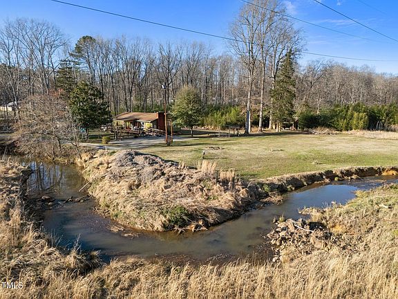 Tucked away on 2.44 private acres, this serene retreat offers peaceful one-level living with direct access to Stony Creek. Perfect for the outdoorsman, gardener, aspiring homesteader, or artist seeking inspiration, this home offers privacy and a deep connection to nature. The ranch-style home features 3 spacious bedrooms and 2 bathrooms, with a handicap-accessible layout for comfort and ease. Relax on the covered front deck or entertain on the side deck, all while enjoying tranquil creek views. Ideal for creating your dream garden, homestead, or outdoor sanctuary. The property also offers ample storage space, including sheds, a wired building for tools and equipment, and a paved driveway that leads to a circular gravel drive for easy access. Conveniently located just minutes to Downtown Hillsborough, Duke Hospital, and easy access to Durham, Chapel Hill, I-85, Hwy 70, and Durham Freeway. A rare opportunity to own a secluded property that's close to everything but feels miles away.