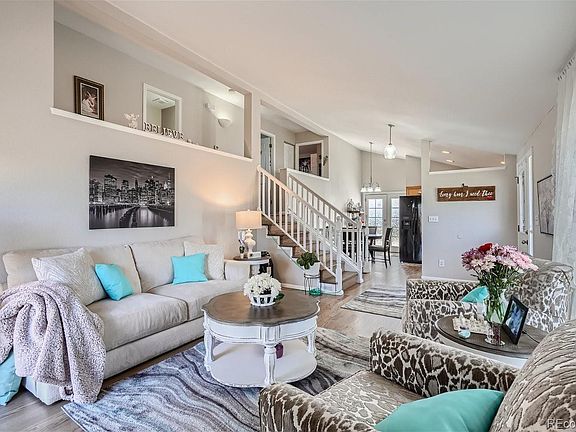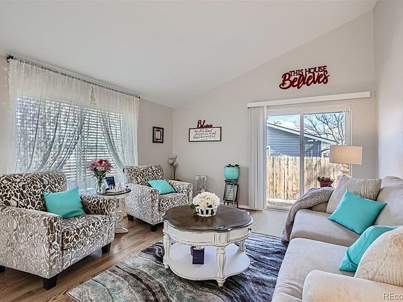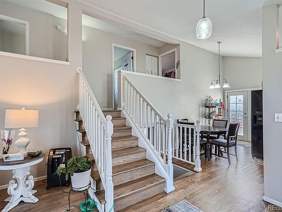 Much larger than it looks! 5 good sized bedrooms and 3 bathrooms!! Granite countertops in kitchen, stainless steel appliances and 2 patios, one on each side for morning or afternoon sun. Vaulted ceilings and French doors make this home light, bright and inviting. Hardwood floors on all of main floor plus stairs and hallways. Floors refinished, new paint and new carpet 1 1/2 years ago. Newer water heater. Roof replaced 7 years ago. Fully fenced in large yard with plenty of room for kids and pets. RV parking next to garage and NO HOA! Located in highly desirable neighborhood within walking distance to the highly rated Legacy High School and Westlake Middle School. Perfect location close to restaurants, shopping and I-25.