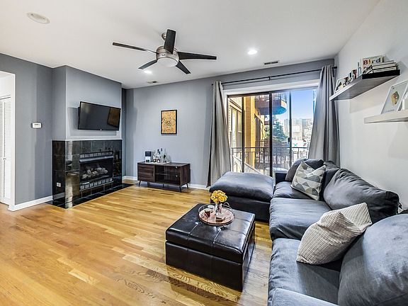 Stylish 2 bedroom 1 bath condo with an in-unit laundry. Modern kitchen with high-end appliances, beautiful cabinets, granite countertops and lots of storage. Living room features a gas fireplaces and balcony overlooking a lovely courtyard. There is a small deck off the back which is nice for grilling. Two generous size bedrooms, hardwood floors throughout and ample storage. Excellent location with easy street parking and just minutes to the Addison blue line and Kennedy Expressway. Conveniently located to many shopping and dining options! Low assessments. Great for investors and owner occupants as well.