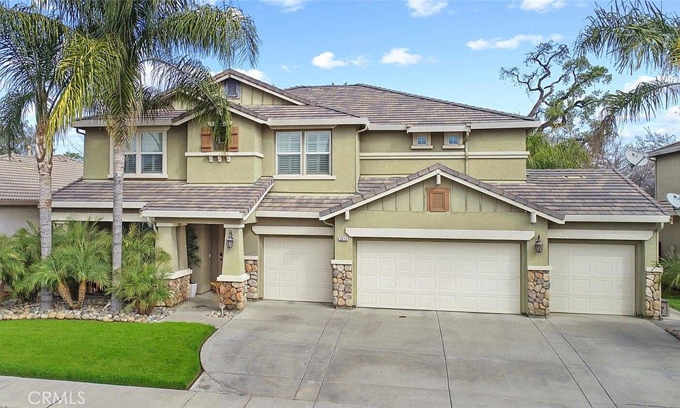 With just over 3,500 sqft of living space, this updated and spacious home offers five bedrooms, three bathrooms, a four-car garage and solar for significant energy savings! Enter the front auxiliary space, ideal for a formal living and dining area—perfect for those who enjoy entertaining and hosting. Continue to the main living area, which features a modern kitchen with an island, bar top seating, granite countertops, stainless steel appliances, and abundant storage. Enjoy informal dining in the breakfast nook that seamlessly connects to your open living room, featuring vaulted ceilings, a cozy fireplace, and floods the room with natural light. Just off the living room is your guest bathroom, first bedroom, and in-home laundry unit with a sink & storage for convenience. Upstairs features a versatile loft/auxiliary space, ideal for a home office, playroom, or additional lounge area. The expansive primary suite includes an en-suite bathroom featuring his & her sinks, a small vanity, walk-in shower, soaking tub and a large walk-in closet. Enjoy countless activities in your entertainer's backyard fully equipped for outdoor living, featuring a sparkling pool that is fully-fenced, fire pit, a covered patio with ceiling fans plus an island/bar top fit for entertaining & enjoying a meal outdoors. Conveniently located near Manuel Hernandez Elementary and just moments away from local shopping and amenities, this incredible home is ready for new owners.