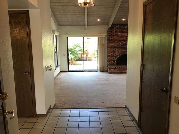 Enjoy the peaceful atmosphere in this gated PUD that is complete with a community pool. This two bedroom two bath home tucked away in this friendly shaded community boasts of a spacious living area with a fireplace, high ceilings, wet bar, french doors, and a formal dining room. Large two car garage with auto opener and lots of storage cabinets. Home does need updating but priced accordingly. Assoc includes: Insurance on exterior of building structure, common area of gardening, front yards, pool, garbage, water.