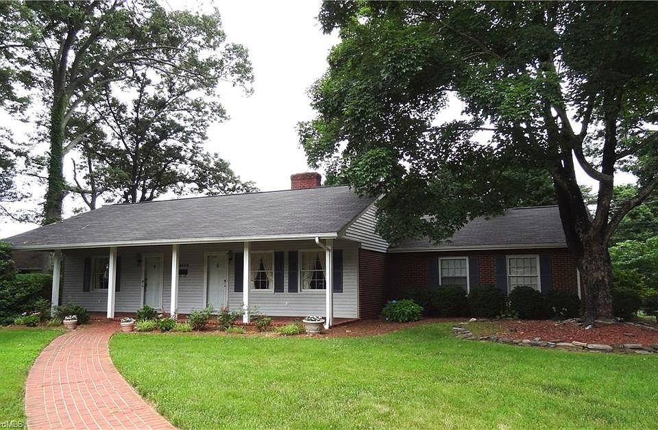Charming one level brick home, with adjoining living space. Call it an 'apartment'; separate entrance, full bath, bedroom, fireplace and 400 sq ft den! Hardwood floors and smooth ceilings, all in excellent condition. Over 40 foot long front porch, you'll feel like you're at a resort hotel. Office, unfinished basement, garage, basketball goal and storage building. All this and NO steps. Peace of mind with structural inspection complete, see attachments. Wake Forest University and Mt Tabor High school.