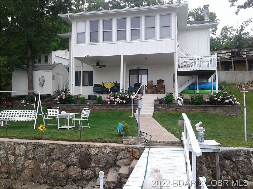 Lovely lake home very well maintained by these full time owners. Perfect location in Gladstone cove of the coveted Gravois arm. Nice recent updates including new central heat and air. Light and bright spacious open floor plan with plenty of glass to enjoy the outstanding view. Nicely landscaped large storage shed awesome large garage. Ideal quiet waters to enjoy fishing and swimming. All paved roads to the subdivision with very little gravel to the house very short distance to the historical Buck Creek store and short ride to town as well. Good parking rounds out this exceptional property