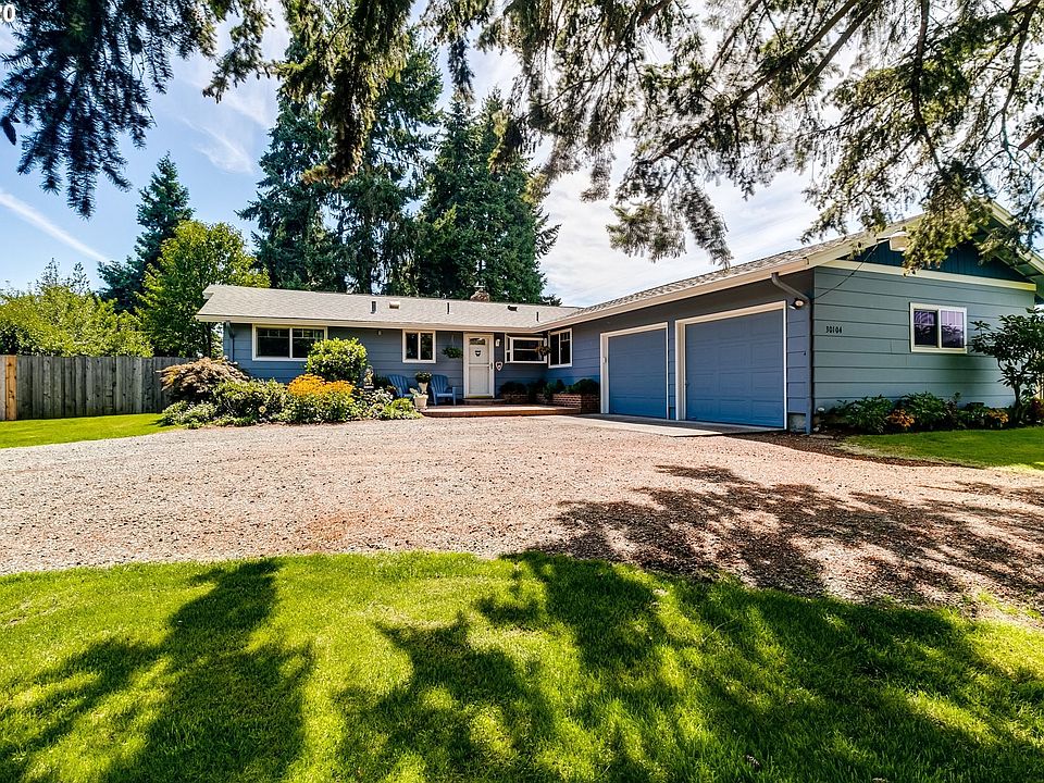 Rural living without all the work! So close to town! Extremely well cared for, one level home with modern amenities. Newer roof and heat pump. Updated kitchen with granite counters and tile, all appliances included. Living room with pellet stove & French doors to covered patio. Gorgeous oak floors throughout. Separate family room. Master has double closets and French doors to access fenced yard and garden area. 2 car garage, circle drive, outbuilding & 8ft gate to backyard w/power for an RV.