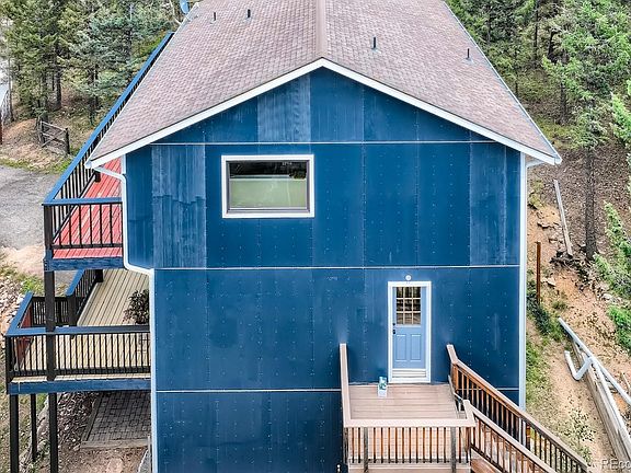 Price Improvement! Welcome to this beautiful and secluded mountain home in Conifer! With over 4 acres, this home features stunning views of the city and mountains. The interior of the home has been updated by the seller. New siding and paint and refinished deck make this home stunning! New windows help bring in that natural mountain light. The garage connected to the basement has been transformed into a large bonus room adding additional finished square feet to the basement with plenty of storage space. A half bathroom has also been added to the basement. The upper levels feature an open layout and beautiful new flooring and new tile. The huge kitchen includes a large kitchen island, granite counters, and plenty of cabinet space. The open family room connects to the newly updated second-level deck. On the upper level, you find the primary bedroom complete with a private bathroom, and two other larger bedrooms with access to the upper deck. The 4.4-acre lot has a domestic well and a large outbuilding perfect for whatever use you see fit. The steel outbuilding was beautifully done with 16’ walls and insulated R-19 in the walls, and R-30 in the ceiling. So many possibilities here! Bring the RV and all your toys, this will hold it all!