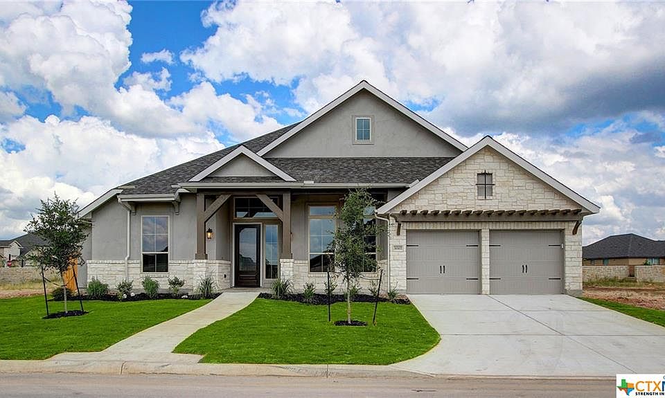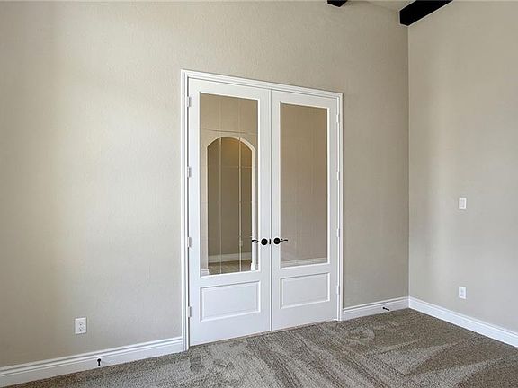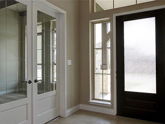 Mahogany front door. Extended entry with a 13-foot ceiling. Library with French doors set at entry. Formal dining room. Spacious family room with ceramic tile floor, a wood mantel fireplace and a wall of windows. Island kitchen features a walk-in pantry. Game room with double doors just off the morning area. Private master suite with a curved wall of windows. Master bath includes double doors, garden tub, separate glass-enclosed shower, dual vanities and two large walk-in closets. Guest suite. Secondary bedrooms and a Hollywood bath complete this generous one-story design. Mud room. Extended covered backyard patio. Sprinkler system. Three-car garage.