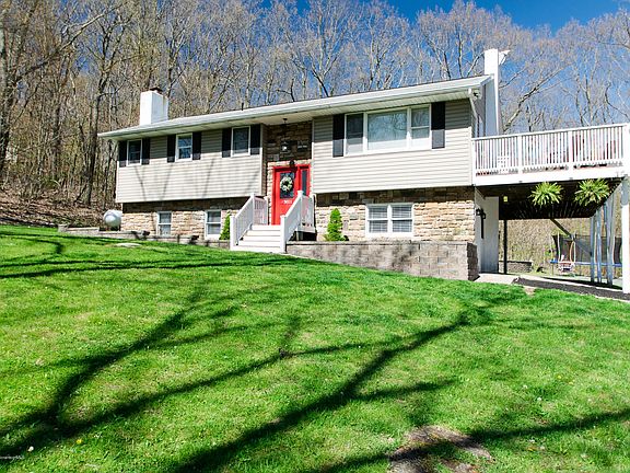 Enjoy the privacy of this Jefferson Heights retreat located on a secluded acre lot in the coveted North Pocono SD. Expansive wrap around deck makes entertaining a breeze in the Summer , while the spacious LL family room w/ FP & wet bar offer plenty of space for Winter entertaining. You'll love preparing meals in the tiled, SS kitchen w/ breakfast bar & dining area. 3 spacious bedrooms are serviced by a tastefully updated tiled full bath. The MBR offers his & her closets. Convenient LL laundry room provides a large WIC for additional storage. Perfect for guests or in/laws, the LL also has an updated 3/4 bath. Natural sunlight floods the 1st floor LR. Stylish laminate HW flooring throughout. Handy barn/storage shed for your outdoor equipment. New gas heating system.