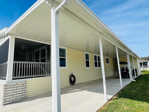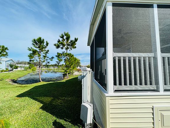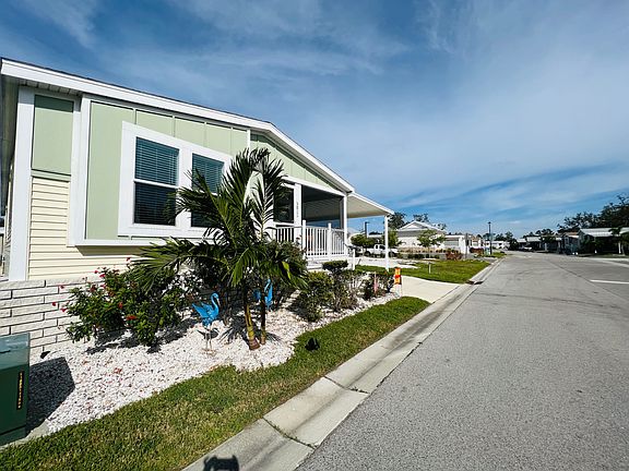 Looking for an amazing home? Look no further to this beautiful 2019 Palm Harbor Kingsley model. This is the largest home in Colony Cove.This home has three bedrooms generous in size and an office/den off of the laundry room and with an oversizeshed with 2 x 4 construction perfect for tools and storage. The front of the home has curb appeal with flower beds and palm tree, which leads you to the beautiful front screened porch with a ceiling fan and outdoor carpeting.As you enter the front of the house you will be greeted by a beautiful setting. This would be a lovely place to enjoy your morning cup coffee.This home is in an age qualified community of the Oaks of Colony Cove.You enter through a gorgeous etched front door to a large open floor plan. This home also is desired for the split floor plan. The guest bedrooms are large enough for queen bedroom sets with dresser and night stands, which the guest bedrooms and guest bathroom are in the front of the home and the master suite is located in the rear of the home, whichis bright with natural light from the windows and is large enough for a king-size bed, two full dressers and two night stands, with a huge walk-in closet.If you enjoy cooking this is a perfect chef kitchen.A large island for all of your prepping needs with generous amounts of cabinets for your storage and plenty of pantry room.This home has upgraded cabinets offering lots of storage which is surrounded by matching Whirlpool black appliances.There is plenty of counter space for your cooking and baking pleasure, which is complimented by the large deep stainless-steel sink. Vinyl plank floors run throughout this home to the bedrooms which are covered with new carpeting. Fresh paint on the drywall accentuates the crown molding throughout. The living room is large enough for sectional furniture and is lined with windows decorated with blinds and a brand-new lighted ceiling fan.There also is a beautiful screened back porch with a water view that also has an outdoor ceiling fanand outdoor carpeting. This area is a perfect place to enjoy your evening cocktail.The upgrades to this home within the last 30 days are: fresh paint through the entire home, brand-new carpeting in the bedrooms and ceiling fans installed in every room including screen porches. The carport is large enough for three cars and your golf cart. This home is sold unfurnished but does include kitchen appliances, washer and dryer that are only 30 days old and exclusively high end. Listing price for this house is $199,500 This home is smoke-free.Lot rent from this home is $1085.00per month, includes lawn maintenance, trash, and all the amenities offered by Colony Cove, including a heated pool within walking distance. This home is located in the new gated section of The Oaks at Colony Cove on the quiet street of Ruby. Living in The Oaks also gives you full access to all the amenities Colony Cove has to offer. A short golf cart rides away and you will be able to enjoy the private fishing pier, pavilion, pickleball courts, tennis courts, private marina, dog parks as well as any of the 6 swimming pools and 5 clubhouses along with all the activities the active 55 plus community offers. Shopping, restaurants, and beautiful beaches are a short drive away. Surround yourself in an active community while soaking up the Florida sunshine! This won't be on the market long, so call today for a private tour! This home is a MUST SEE!!! All listing information is deemed reliable but not guaranteed and should be independently verified through personal inspection by appropriate professionals. Integrity Mobile Home Sales cannot guarantee or warrant the accuracy of this information, measurements, or condition of any property. Measurements are approximate. Located along Florida's Gulf Coast, in highly sought-after Manatee County, Colony Cove is an age-qualified, resort-style mobile home community with waterfront views, premier new homes and amenities desi