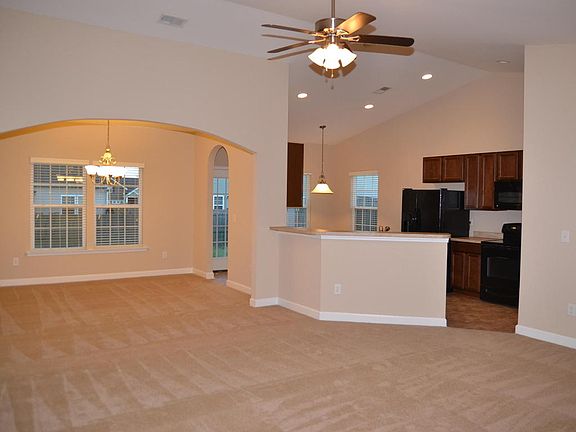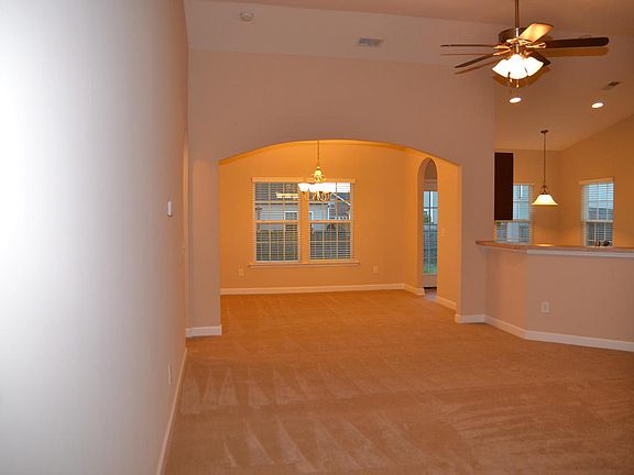 Lennar Cypress A which features high vaulted ceilings, beautiful arches throughout, separate formal dining room and large open family room. Large master suite with tray ceiling, deluxe master bath with separate shower and large garden tub, separate toilet room, large welkin closet, double bowl vanities and beautiful maple cabinets. Kitchen features full appliance package with smooth top self cleaning range, built in microwave,dishwasher, disposal and side by side refrigerator. Recessed lighting on a high vaulted ceiling in kitchen, spacious walk thru panty and laundry room to a two car garage. Rear covered patio and fenced yard. The fourth bedroom is a large room over the garage with a separate zone for efficiency.